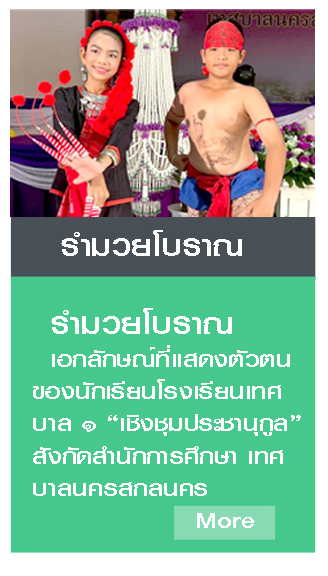 ยินต้อนรับเข้าสู่เว็บไซต์ โรงเรียนเทศบาล ๑ "เชิงชุมประชานุกูล" สังกัดสำนักการศึกษา เทศบาลนครสกลนคร ท่านสามารถติดตามความเครื่อนไหวและขั้อมูลพื้นฐานได้ที่นี่ www.tb1ck.ac.th
